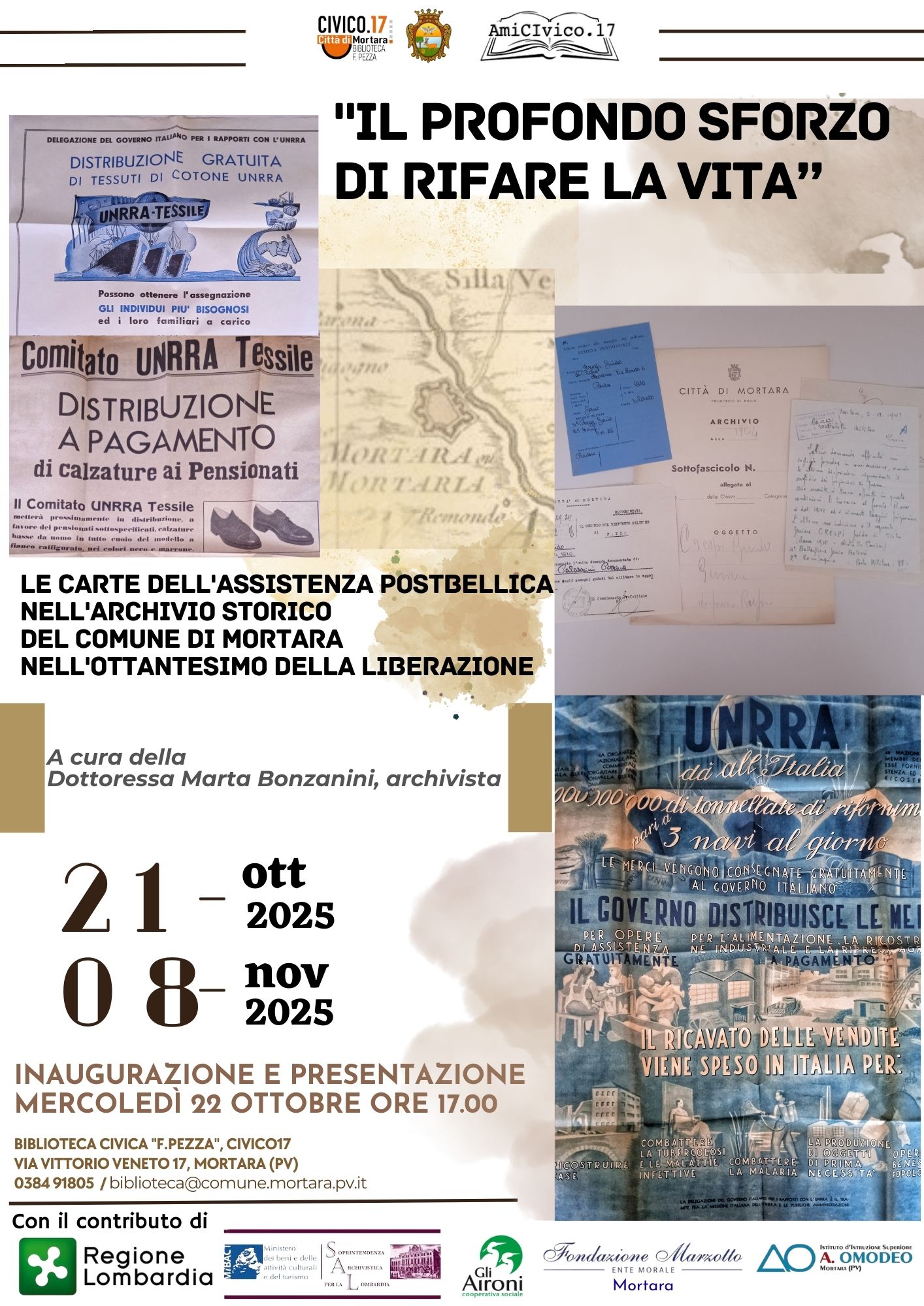 Il profondo sforzo di rifare la vita: le carte dell'assistenza postbellica nell'Archivio storico del Comune di Mortara, Mostra a cura di Marta Bonzanini
