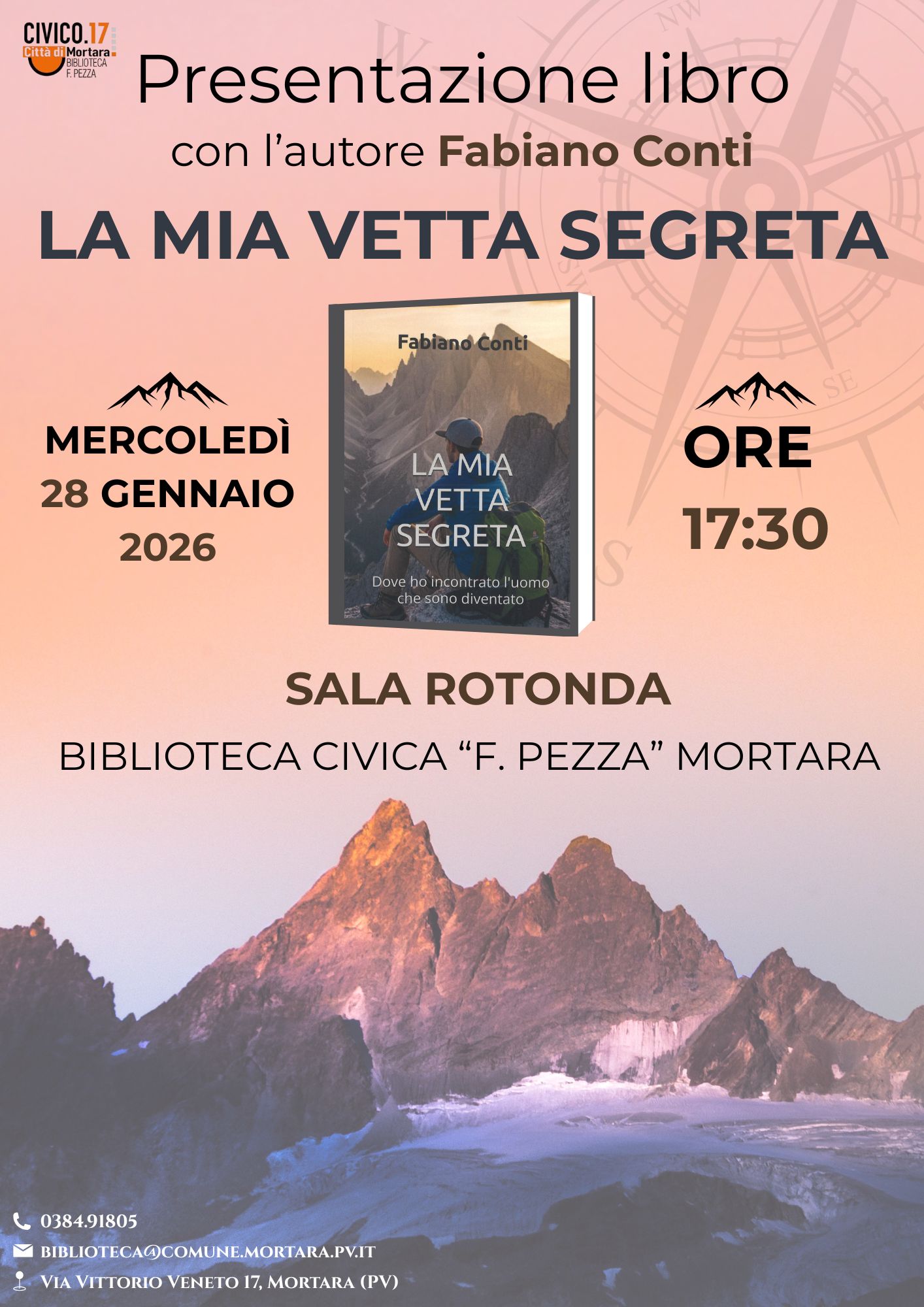 La mia vetta segreta. Presentazione del libro con l'autore Fabiano Conti. Mercoledì 28 ore 17,30.