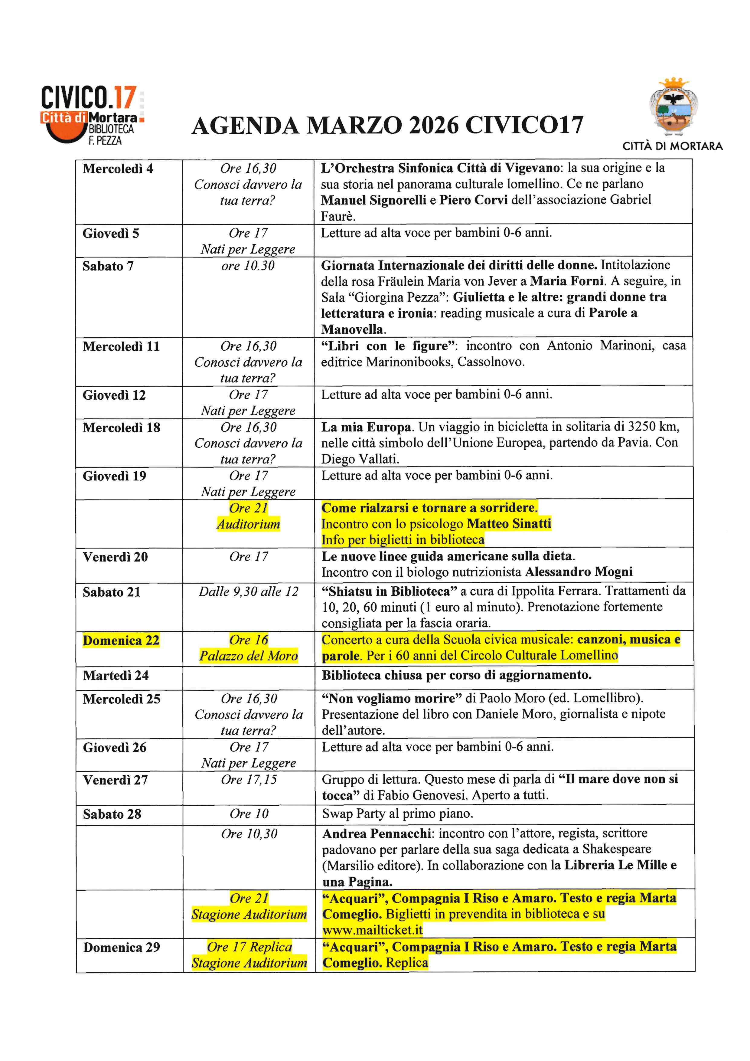 Gli appuntamenti di marzo al Civico 17