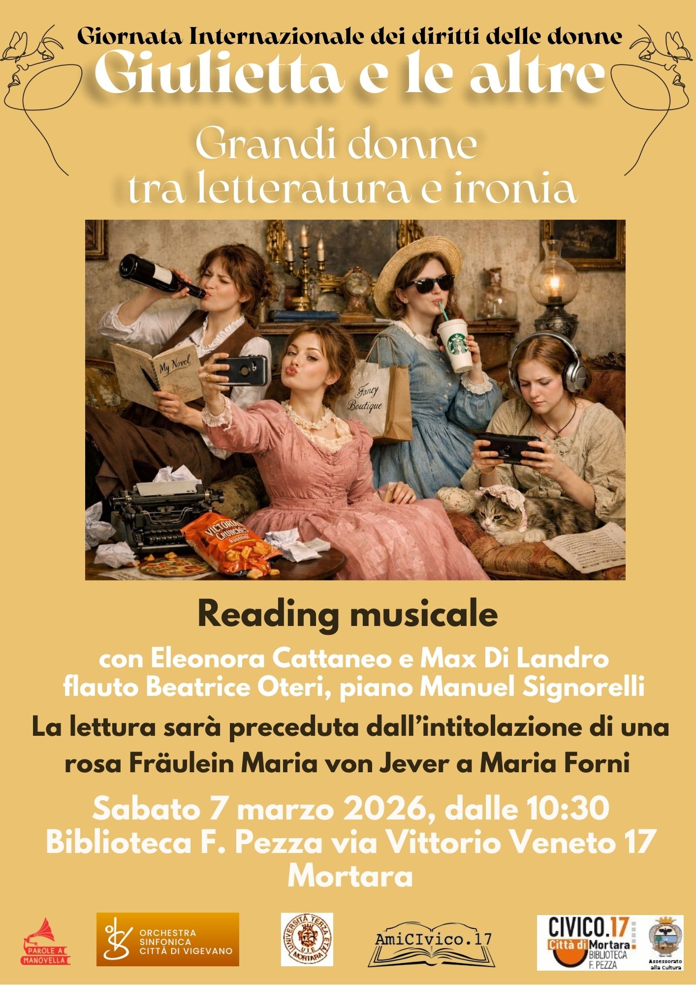Giornata Internazionale dei diritti delle donne: Intitolazione della rosa Fräulein Maria von Jever a Maria Forni. A seguire, in Sala “Giorgina Pezza”: Giulietta e le altre: grandi donne tra letteratura e ironia: reading musicale a cura di Parole a Manovella.